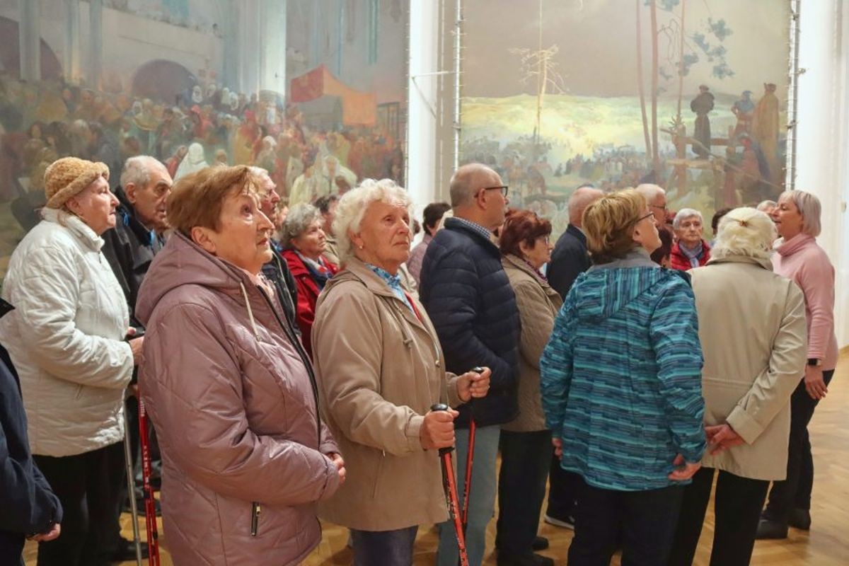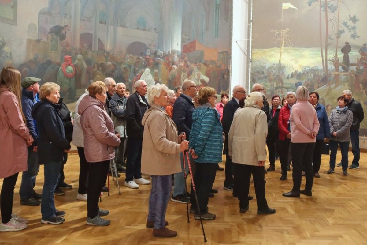 V tomto pololetí jsme připravili tři poznávací zájezdy. V dubnu jsme zajeli do Moravského Krumlova, kde jsme si v zámku prohlédli Slovanskou epopej Alfonse Muchy. Je to velkolepé, úžasné dílo. Na zpáteční cestě jsme se zastavili ve Vyškově. V květnu jsme obdivovali práci sklářů v Moravských sklárnách Květná. Ruční výroba skla je tu nepřetržitě od roku 1794. Jejich výrobky jsou nádherné a vyváží je do celého světa. Na obědě jsme byli v Bojkovicích, kde je krásný zámek Nový Světlov. Ten jsme viděli jen zvenčí. Cestou jsme nemohli vynechat prohlídku baziliky na Velehradě. Vždy je to zážitek. Malý výlet jsme měli do Doubravského dvora u Červenky na mléčnou farmu, kde manželé Osičkovi chovají krávy, vyrábí a prodávají mléčné výrobky a jiné biopotraviny. V Litovli jsme navštívili muzeum harmonik. Je tam největší sbírka akordeonů a heligonek ve střední Evropě. Všechny jsou moc krásné.