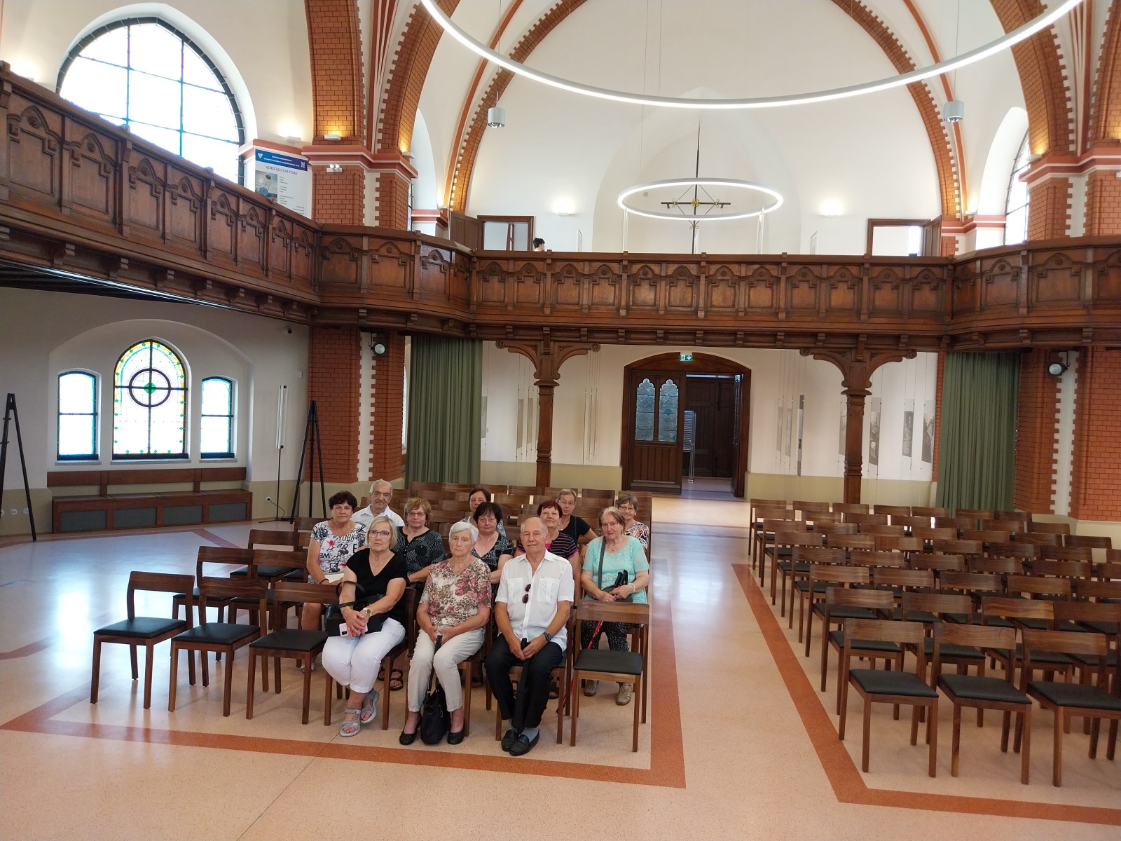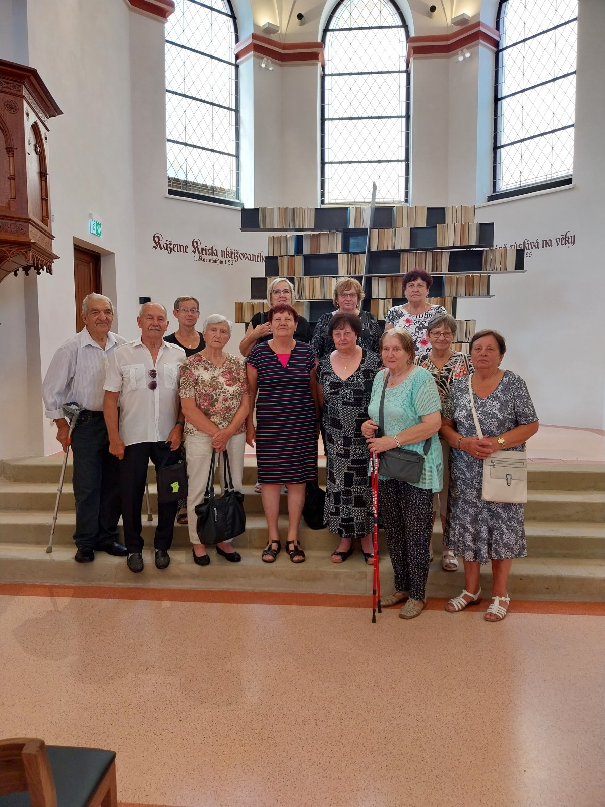 jsme navštívili textilní muzeum. Prohlédli jsme si jednak stroje, ale hlavně jsme obdivovali nádherné historické i současné brokáty, které se v Hedvě, byť už omezeně vyrábí. Také jsme zašli na výstavu lidových krojů ze Slovácka. V parčíku v blízkosti Hedvy je kaple Navštívení Panny Marie V Lipkách. Kaple svou freskovou výzdobou patří k nejkrásnějším na severní Moravě.