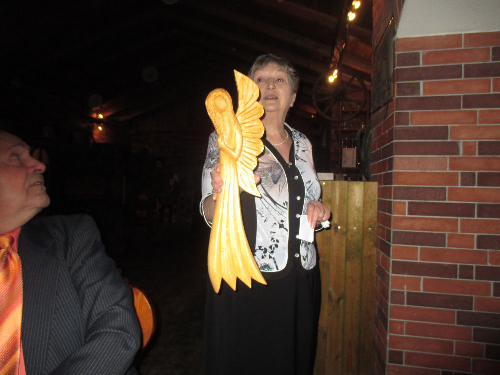 Na náš seniorský ples přišel vzácný host - řezbář pan Jiří Halouzka a do tomboly věnoval sošku anděla.